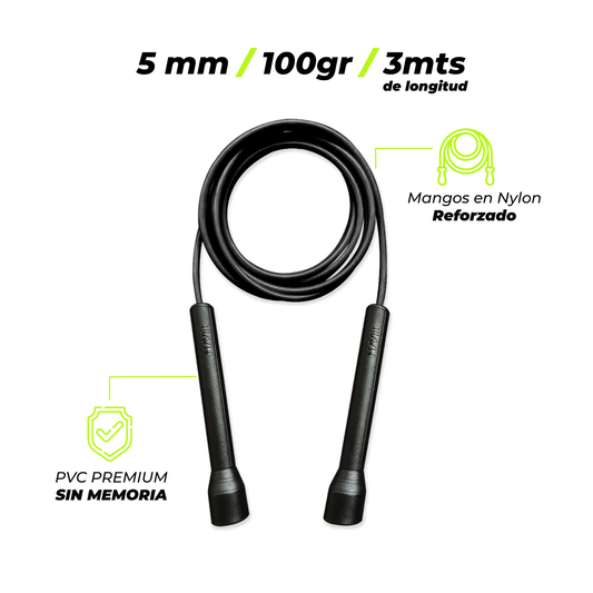 Lazo Cuerda para Saltar | Velocidad, CrossFit | 5mm PVC Premium | Negro