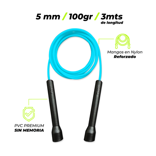 Lazo Cuerda para Saltar | Velocidad, CrossFit | 5mm PVC Premium | Azul Claro